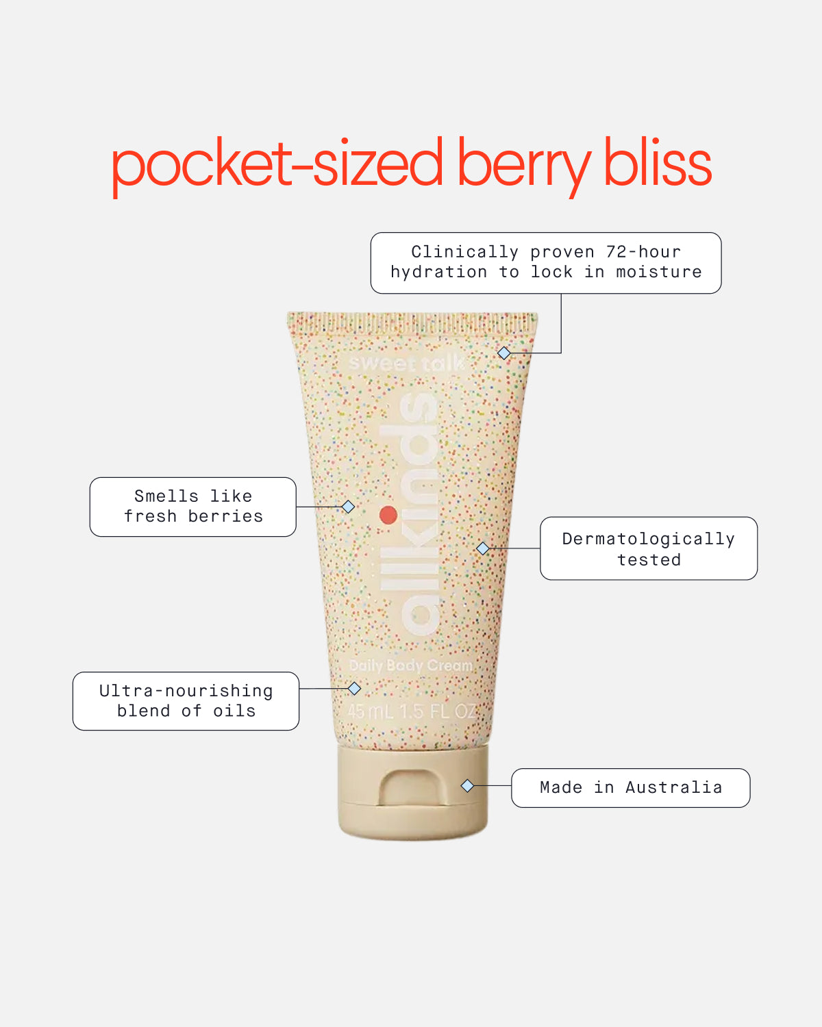 A mini, travel-sized, ultra-moisturising, sweet, everyday body cream.