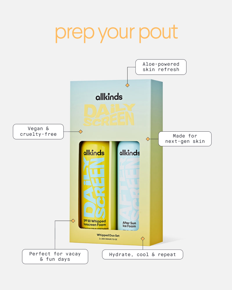The whipped dream team for vacay days. Start your day right with our airy SPF 50 Whipped Sunscreen Foam - smooth, fun and sun smart. Cool it down at the end of the day with the After Sun Ice Foam for the ultimate refresh, drenching your skin in Aloe Vera. SPF, hydrate, repeat.