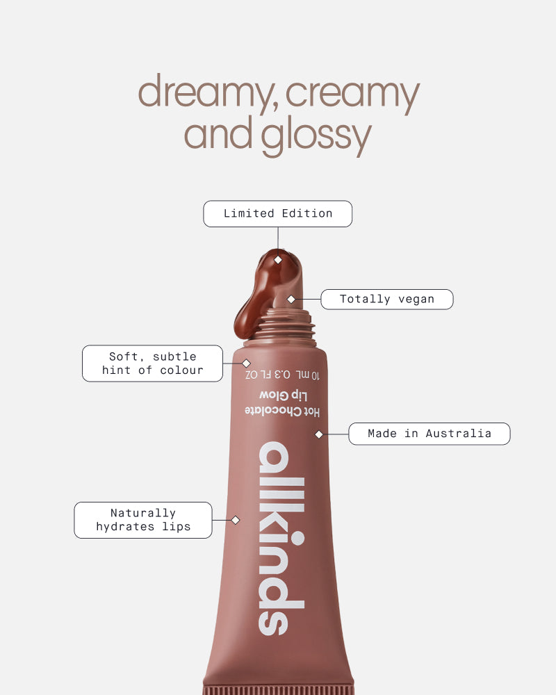 Cosy vibes only. This tinted Hot Chocolate Lip Glow adds the perfect nourishing shine to your lips.