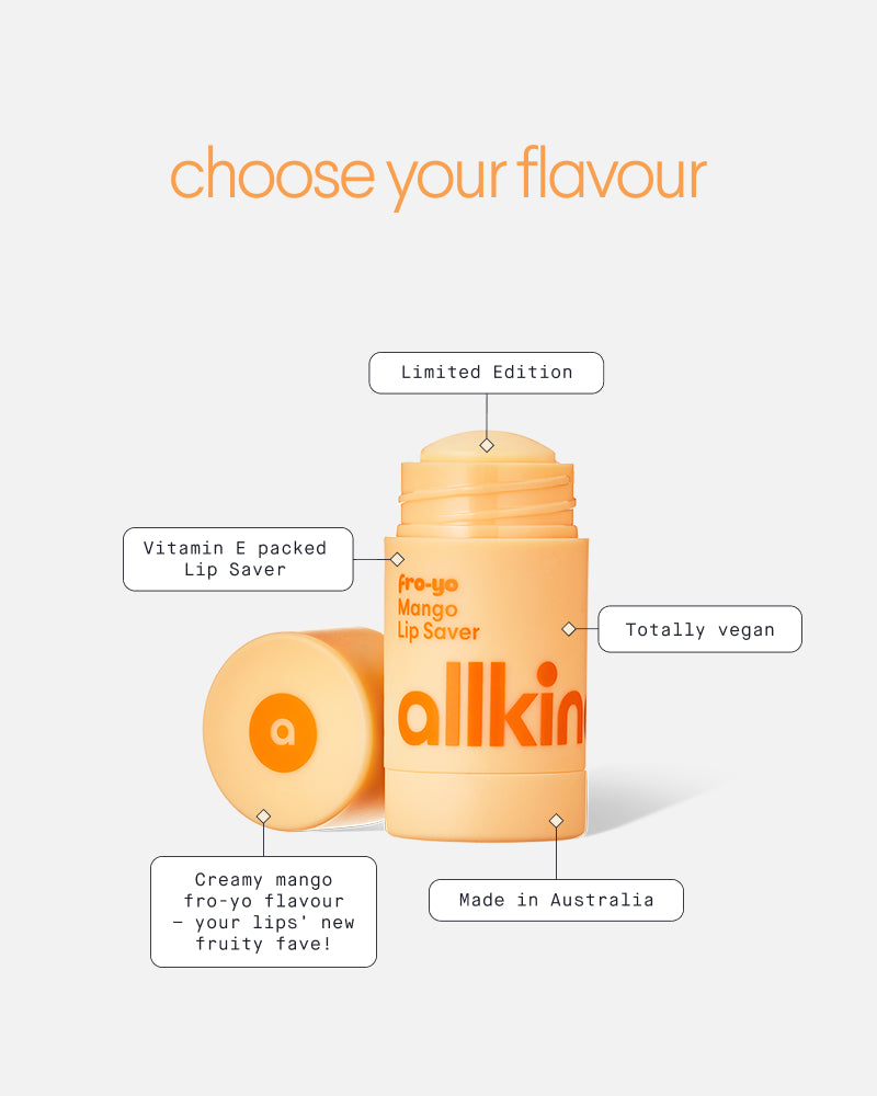 Get ready for a fruity treat like no other! Our iconic Vitamin E - packed Lip Saver now tastes like creamy mango fro-yo!