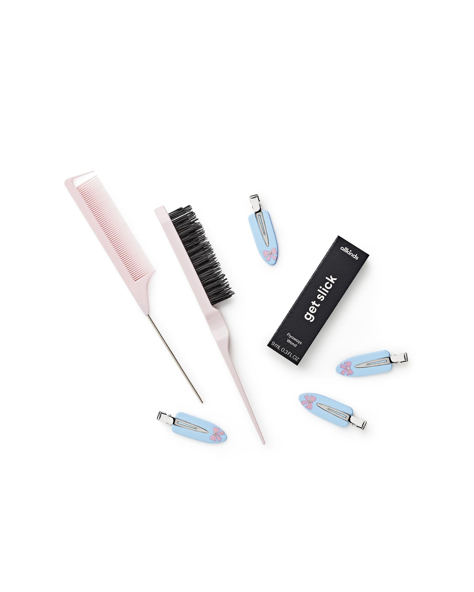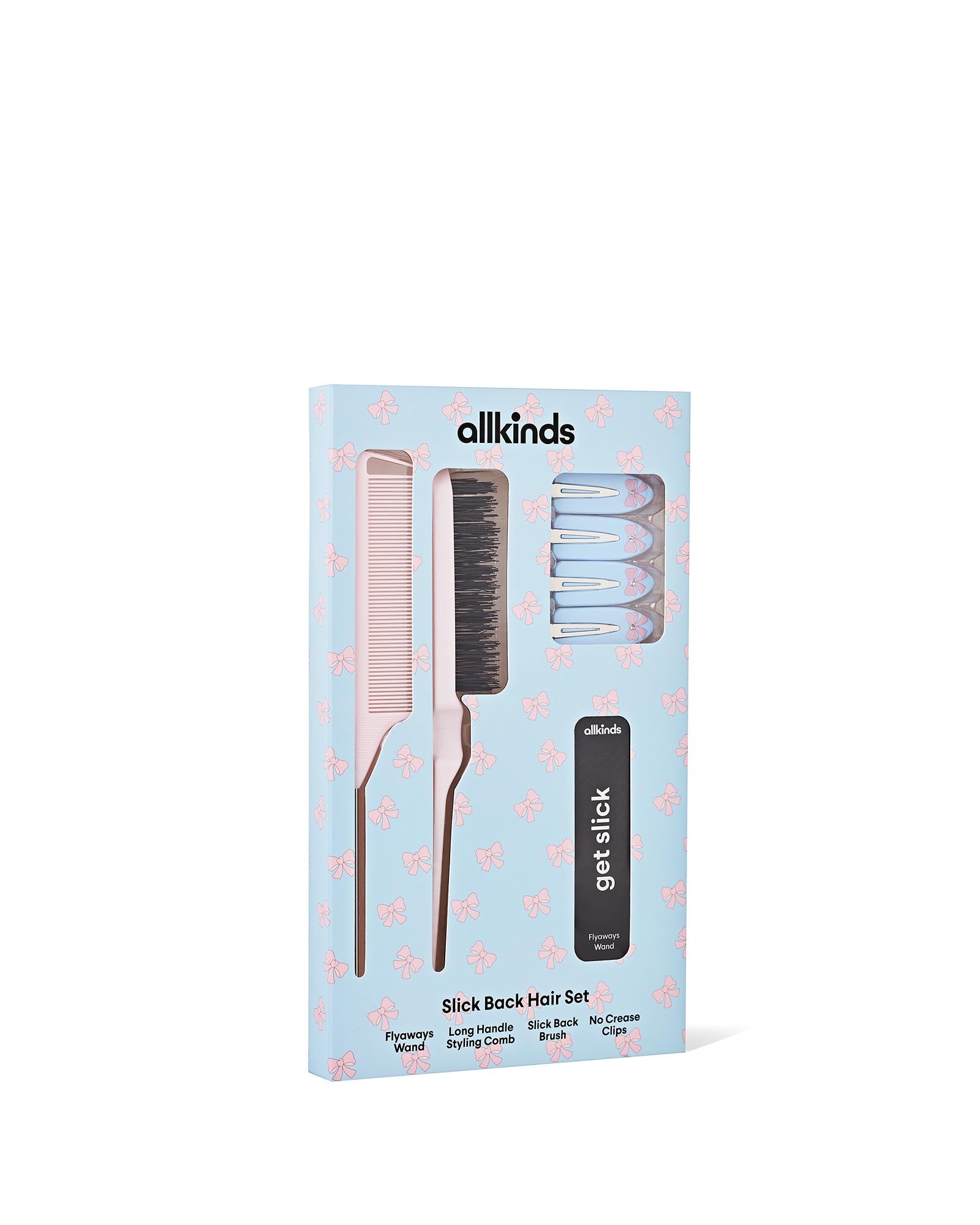 This kit is your best kept secret to a slicked back hair style. These accessories make it easy to tame fly aways and give you the perfect slicked back look.